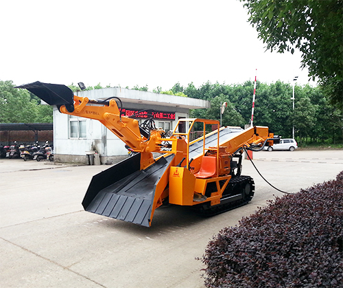 2. 采用電動全液壓傳動,液壓行走、挖掘采集、輸送、裝車四種功能,機(jī)構(gòu)緊湊,推進(jìn)力大,扒取范圍廣,可以全斷面裝巖,不留死角,不需人工輔助清理工作面;